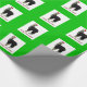 Um alpaca preto e branco (smoking) num chapéu de Papai Noel com o texto "Feliz Navidad" em padrão repetido decora este papel de embrulho de Natal