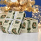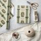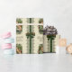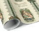Padrão muito festivo e detalhado inspirado por elementos gráficos da era vitoriana, incluindo uma imagem restaurada de Papais noeis com crianças sorridentes no colo, e um ornamento elegante gravado num fundo gravado gravado com ornamentado gravado com texto gravado com filas de rendas verdes e pastel em um padrão holandês com fita verde de cetim e arcos verdes e dourados.