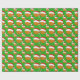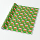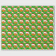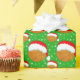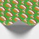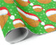 Este papel de embrulho de Natal apresenta um chapéu de Papai noel vestindo basquete com flocos de neve girando em volta de um fundo verde de Natal.