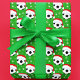 Este papel de embrulho de Natal apresenta bolas de futebol vestindo Papais noeis com flocos de neve girando em volta em um fundo verde de Natal.