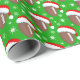 Este festivo papel de embrulho de Natal mostra futebol vestido com chapéus de Santa, rodeado por flocos de neve brancos cintilantes num fundo verde de férias alegre.