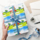 Papel De Presente Papais noeis de golfe estão montando um carrinho d