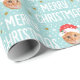 Papel De Presente Papais noeis de Natal Feliz Foto Azul
