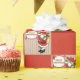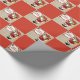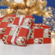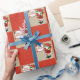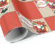 Papel de embrulho de Natal Ocidental Papais noeis de vaqueiro em faixa vermelha e verde e impressão de bloco vermelho Feliz Natal