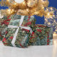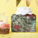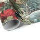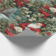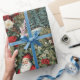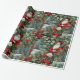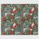 O papel de embrulho apresenta uma cena deliciosa e nostálgica de um Papai Noel antiquado em um charmoso jardim de inverno adornado com um verde-natalino exuberante e majestosas árvores verdes. A design exude o calor e a magia da época de férias.