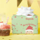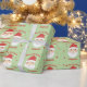 Este papel de embrulho de Natal apresenta um design de papais noeis e estrelas. Personalize-o com um nome.