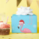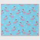 Um rebanho de flamingos vestindo chapéus de Papai Noel está entre flocos de neve. Papel de embrulho bonito para quem ama flamingos!