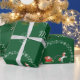 Papel elegante e fofo embrulhado no Natal, com Papais noeis na trenó puxados por um unicórnio, vários flocos de neve, e árvores de Natal decoradas com bolas prateadas. Perfeito para crianças pequenas, especialmente meninas que gostam de unicórnios. Com a saudação "Feliz Natal / Emma!" em escrita cursiva / caligrafia. Certifique-se de personalizar o nome. Em um fundo verde de Natal.