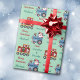 Papel De Presente Papais noeis Pinguins Crianças de Comboio Natal