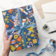 Personagens de Natal como Papai Noel, um anjo, um preguiçoso e dançarino balé são presos em flores, estrelas, pontos e doces para criar um impressão de férias fantástico e caprichoso. Feliz Natal está escrito em uma fonte branca brilhante retrorreflectora.