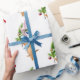 Um gatinho alaranjado sustenta pouca árvore de Natal neste papel de envolvimento doce do feriado.