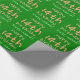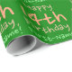 Este amoroso design de papel de embrulho de aniversário apresenta uma mensagem como "Feliz 14, Primeiro Nome!", onde o nome e o número de aniversário podem ser personalizados. O fundo é verde colorido. Um papel de embrulho como este poderia talvez ser usado para embrulhar presentes para celebrar o aniversário de alguém. [~Z0000243]