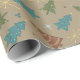 Papel de embrulhamento de Natal no tema. Várias Meios séculos Árvores de Natal modernas e estrelas do astro espacial em tons antigos de Rosa, Azul, Verde e Castanho