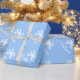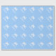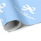 Papel de empacotamento personalizado do nó do arco de fita para chá de fraldas ou primeiro aniversario. Design elegante com nome de criança. Cor de fundo personalizável, ie. azul pastel leve para o menino.