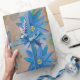 O campo de flores silvestres está coberto de lindas flores azuis de verão. As pétalas desta impressionante imagem floral de aquarela são diferentes tons de azul em torno de um centro amarelo alegre. As flores azuis estão sobre um fundo neutro atraente, então elas são atraentes e bonitas.