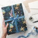 Um papel de embrulho com um padrão azul elegante com estrelas, representando o oceano.