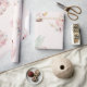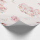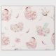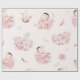 Chá de fraldas feminino embrulhando papel com adoráveis bebês de aquarela e penas em um fundo cor-de-rosa.