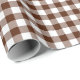 Um papel de embalagem projetado com um padrão de xadrez de verificação em castanho e branco. Personalize o fundo branco entre outras opções.