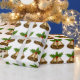 Papel de embrulho de Natal com um padrão gráfico de sinos de Natal com cola oca no topo.