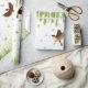 Árvores eurasiáticas espantam e borboletas sob os ramos verdes de um salgueiro chorão. Feito para uma grande tela dobrável, este design tem muitos detalhes interessantes para adicionar variedade às opções de empacotamento de presentes.