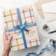 Traga charme para a sua mesa com este embrulho de presente de decoração da festa de segundo aniversário "Dois Muito Divertidos" para a xadrez pastel. Apresentando um padrão de verificação suave em rosa, pêssego, menta e amarelo com uma magnífica tipografia multicolorido, este presente personalizado de presente adiciona um toque lúdico a qualquer celebração infantil. Personalize com o nome do seu filho para um olhar de partido coordenado que os convidados adorarão.