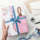 Papel de embrulho de natal cor-de-rosa. Grandes Papais noeis impressão a rosa. Belo papel feminino. Natal rosa.