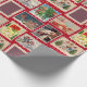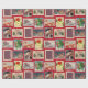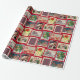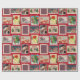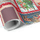 Este papel colorido de embrulho de Natal tem 8 bonitos cartões postais de natais vintages dispostos sobre um fundo festivo e vermelho com flocos de neve. Compartilhe imagens de férias bonitas e vintage com seus amigos e família.