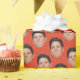Modelo simples. Carregue um png bem cortado de qualquer objeto com o plano de fundo removido (muitos aplicativos de telefone de ai disponíveis) e você pode estar embrulhando presentes no rosto do destinatário, no gato de estimação ou em qualquer objeto que você queira. Regulado sobre um fundo laranja sólido e negrito