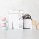 A Torre Eiffel, as palavras "Joyeux Noël" (Feliz Natal em Francês), Paris em tipografia de vintage, legendagem francesa para champanhe e cacau e pecados de vintage holly em preto em branco fazem um belo e interessante papel de embrulho de presente de Natal