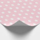 Este papel de empacotamento bonito e moderno apresenta bolinhas brancas em um fundo cor-de-rosa. É o papel perfeito para um presente de chá de fraldas ou aniversário de uma criança.