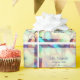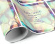 Crie um papel especial de embalagem de aniversário. Design de aniversário da borboleta. Cores iridescentes. Use a modelo para personalizar o nome, o convidado de honra e os detalhes do evento.