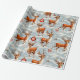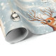 Este padrão apresenta um grupo de renas alegres a piscar numa paisagem de neve, colocada contra um fundo azul-claro. Os ornamentos vermelhos e prateados se pendem em meio a grandes flocos de neve brancos, melhorando o tema das terras maravilhosas do inverno. As renas são ilustradas com uma qualidade de vintage, storybook, fazer este papel de embrulho como uma escolha encantadora para presentes de Natal.