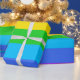 Um papel de embrulho projetado com um padrão listrado com cores brilhantes do arco-íris em tamanho grande.