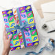 Peixe de palhaço colorido, papel de embrulho de aniversário de criança. Muitos blocos coloridos possuem imagens de peixes tropicais em listras coloridas brilhantes para um menino ou menina.
