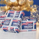 Celebre a estação com este papel de embrulho de Trump festivo. Apresentando as palavras Trump 2024 Take America Back com um fundo azul marinho com estrelas e a bandeira americana.