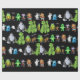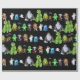 Papel de embrulho preto que inclui todos os monstros do livro Os Dez Pequenos Monstros em uma linha.