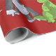 Papel de embrulho vermelho com todos os monstros do livro Os Dez Pequenos Monstros em Pé de Linha.