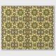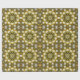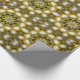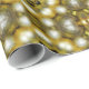 Um papel de embrulho de Natal ouro com um padrão caleidoscópio de ouro reluzente e bolhas de Natal prateadas formando um plástico elegante e decorativo.
