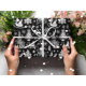 Este papel de embrulho de Natal apresenta um adorável padrão preto e branco no estilo de pelúcia francês.