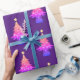 Papel De Presente Papel de enrolamento de Natal roxo com árvore
