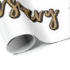 Este papel de embrulho apresenta as palavras "Aniversário" em uma fonte impressão única com contorno preto de letras douradas. Todos os papéis de embalagem são oferecidos em quatro tipos de papel premium e cinco tamanhos diferentes. Tem uma superfície mais macia e acabamento sem graça com a impressão de cores borda a borda do cheio em papel de 60 lb, com peso de texto. Excelente para todos os tipos de embrulho de presentes para qualquer coisa, desde aniversários até a graduação, casamentos até aniversários.