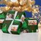 Belo papel de embrulho de ilustração de árvore de natal de aquarela. Mão pintada em nosso estúdio. Design exclusivo. Fácil de personalizar sua foto e texto.