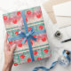 Enrole seus presentes com esta design festiva com ornamentos vermelhos de Natal espalhados sobre um fundo de bonito cores de Natal.