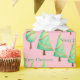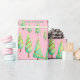 Papel de embrulho da árvore de Natal em aquarela. O trabalho de arte é criado por Cheng Jing. É um padrão perfeito - capaz de azulejo. A cor de fundo é rosa. Texto: Feliz Natal