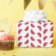 As fatias vermelhas da melancia do divertimento com cascas verdes e as sementes pretas arranjaram nas fileiras.