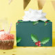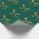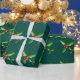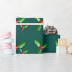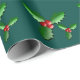 O papel de envolvimento mostrado com um fundo verde profundo da cor com um azevinho festivo do feriado imprime. Personalize este artigo ou compre-o como é.