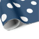 Papel de envolvimento do teste padrão de bolinhas dos azuis marinhos e do branco. Cor feita sob encomenda do fundo atrás do teste padrão branco dos polkadots. O giftwrap pontilhado bonito para o feriado do aniversário, do casamento ou do Natal apresenta. Mude a quantidade para obter o preço o mais barato por o rolo. Wrappingpaper polkadotted na moda do impressão para mulheres e miúdos dos homens. Personalize em volta do tamanho do ponto a pequeno ou a grande.