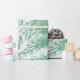 Papel de envolvimento do Natal com árvores brancas e fundo verde