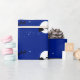 Papel de envolvimento do Natal com o papai noel em seu trenó com a rena na silhueta cercada por muitas estrelas e por uma Lua cheia contra um fundo azul na noite.
