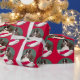 Este é um rolo do papel de envolvimento vermelho do feriado que caracteriza uma fotografia original de um fígado e de um Spaniel de Springer inglês branco que se sentam com um chapéu do papai noel.